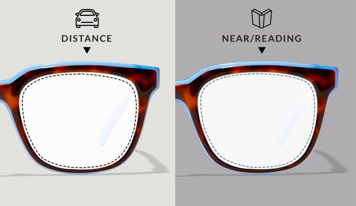 Dual power lenses with both near(reading) and distance (far) powers (more common in people above age 40).